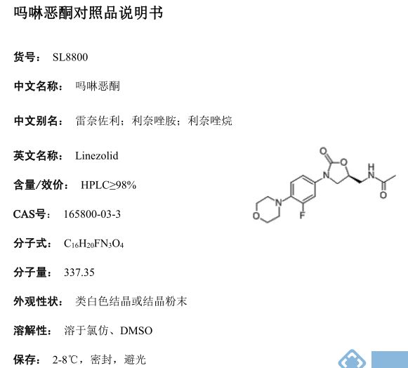 产品名称: 吗啉恶酮/利奈唑胺标准品
