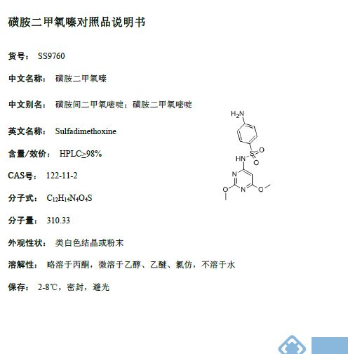 磺胺二甲氧嗪标准品-常用生化试剂-试剂-生物在线